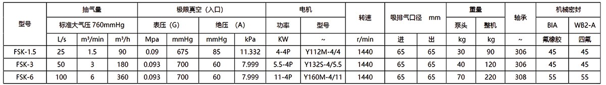 2.上列性能基于進氣溫度20℃,進水溫度15℃,排氣壓力1013hpa的條件,被吸入氣體為飽和空氣。(飽和空氣是指在對應吸入狀態下,其相對濕度為100%的濕空氣。)3.抽氣速率、軸功率性能允差10%。